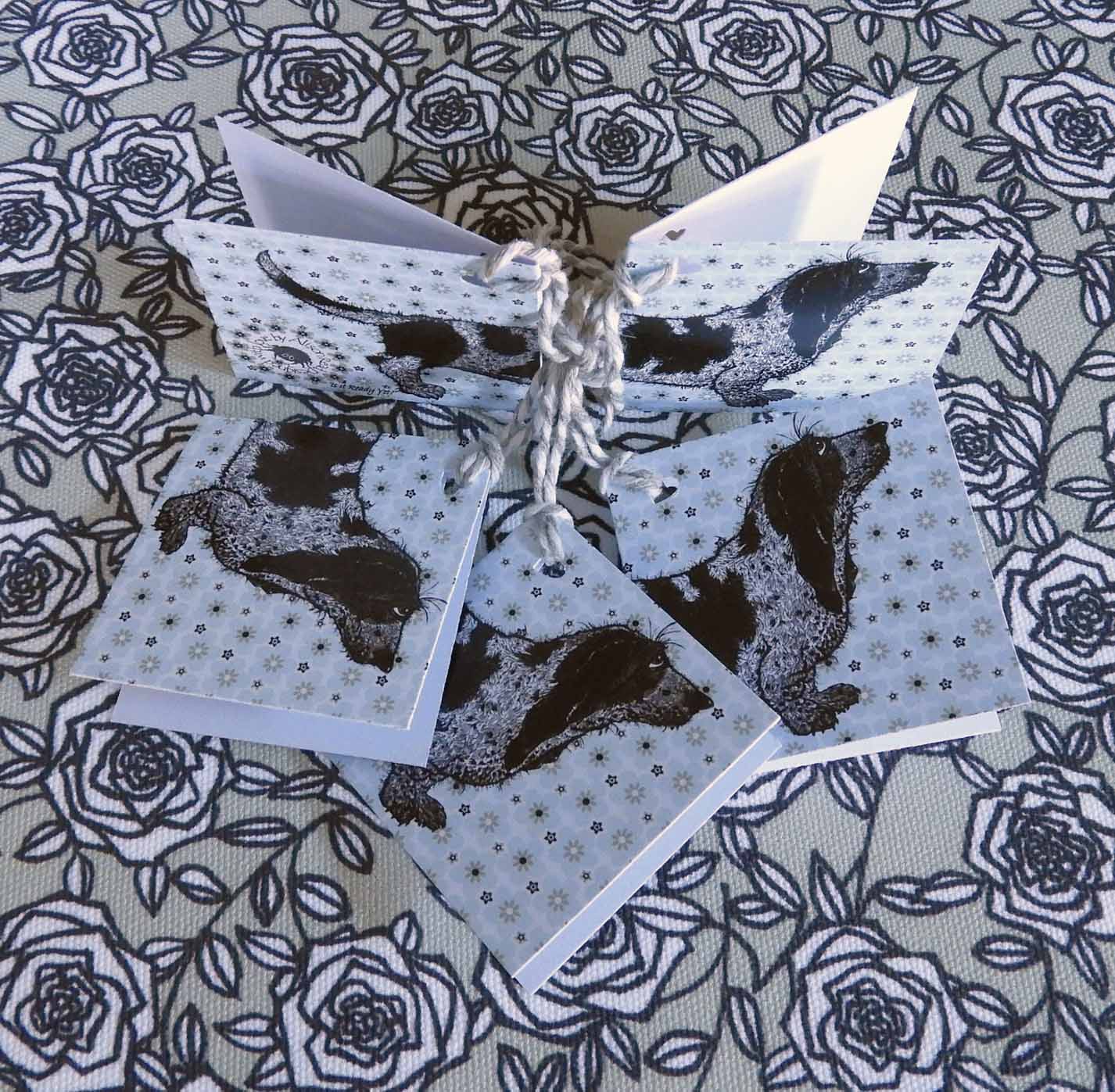 Brigitte Bardog on Blue with Green Chrysanthemums Gift Tags x 6