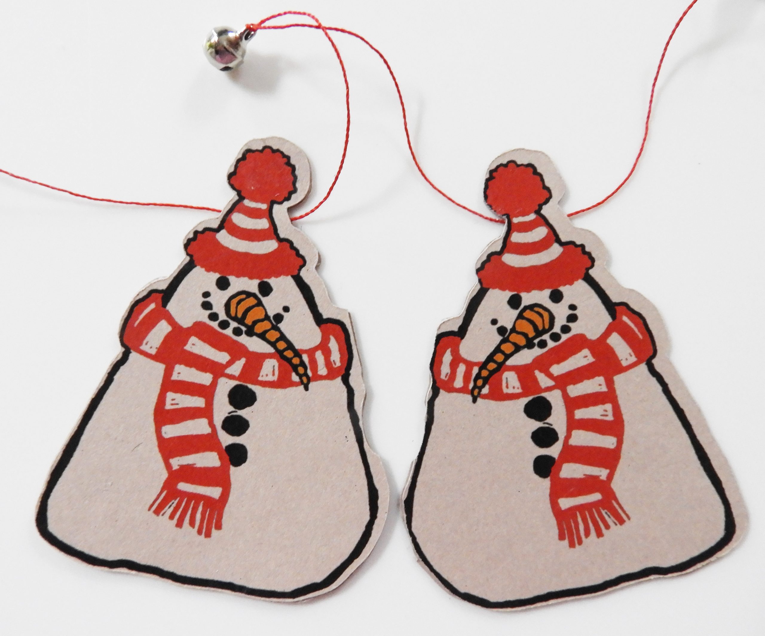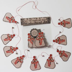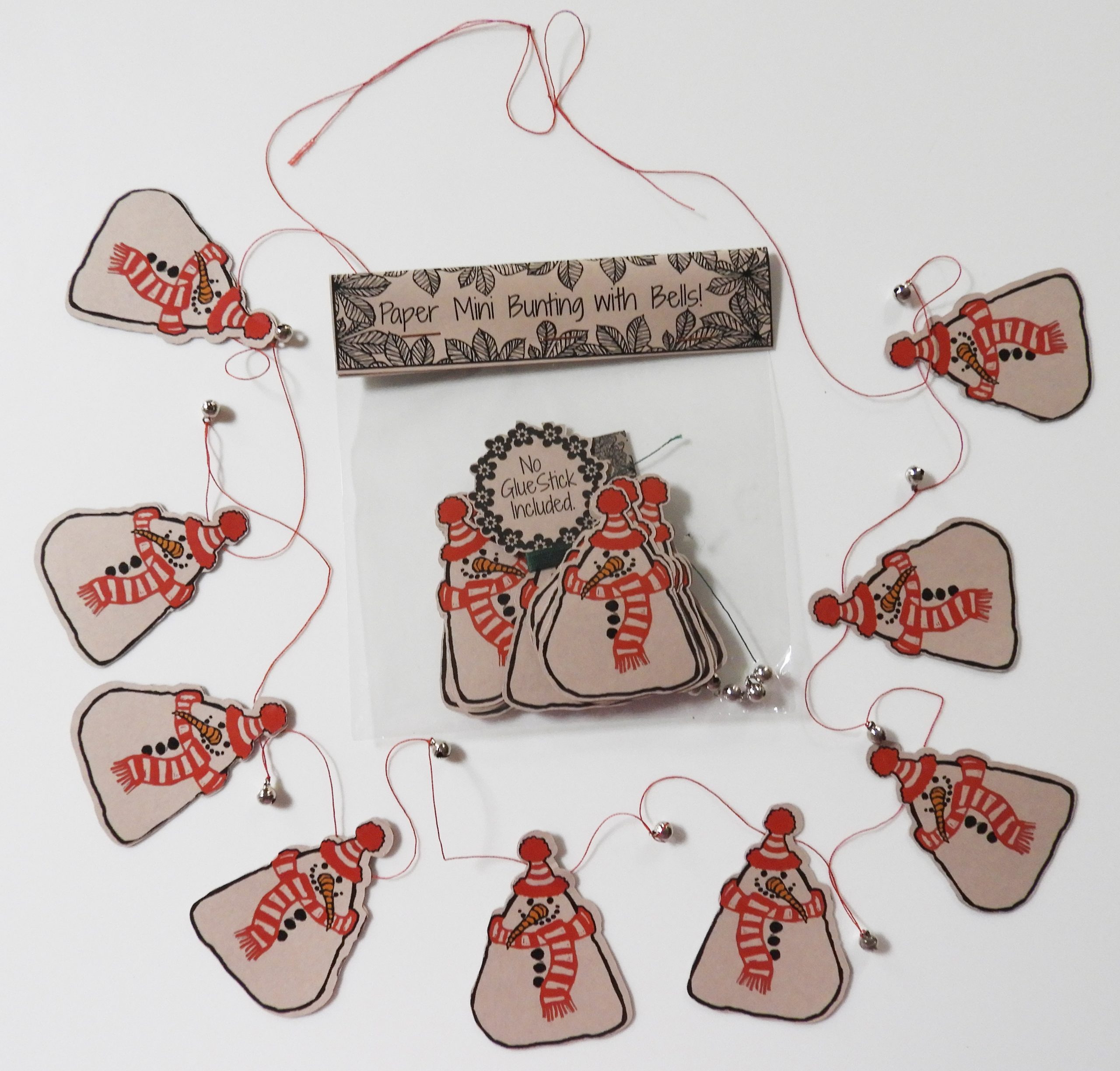 Red Snowmen with Bells D.I.Y Paper Bunting comes with approximately 18 motif, equal fronts and backs and the cotton. Plus mini bells. Using a glue stick, glue both sides of each motif and stick together along the string ensuring that they are bottom heavy, i.e the cotton is nearer the top. These look great over a fireplace or a bedstead.  I used cotton for its delicacy as it tends to disappear into the background and focus is on the motif. Made from 250g 80% recycled heavy paper. Because these are double sided they can hang in a window or in doorways and look the same from any view. Kept separate they can make twice the length of bunting, or be used as die cuts for card making or invites etc. Each kits easily makes 1.2m of bunting, twice if used individually. All the motif are taken from my linocuts and heavily influenced by Victorian decorations.