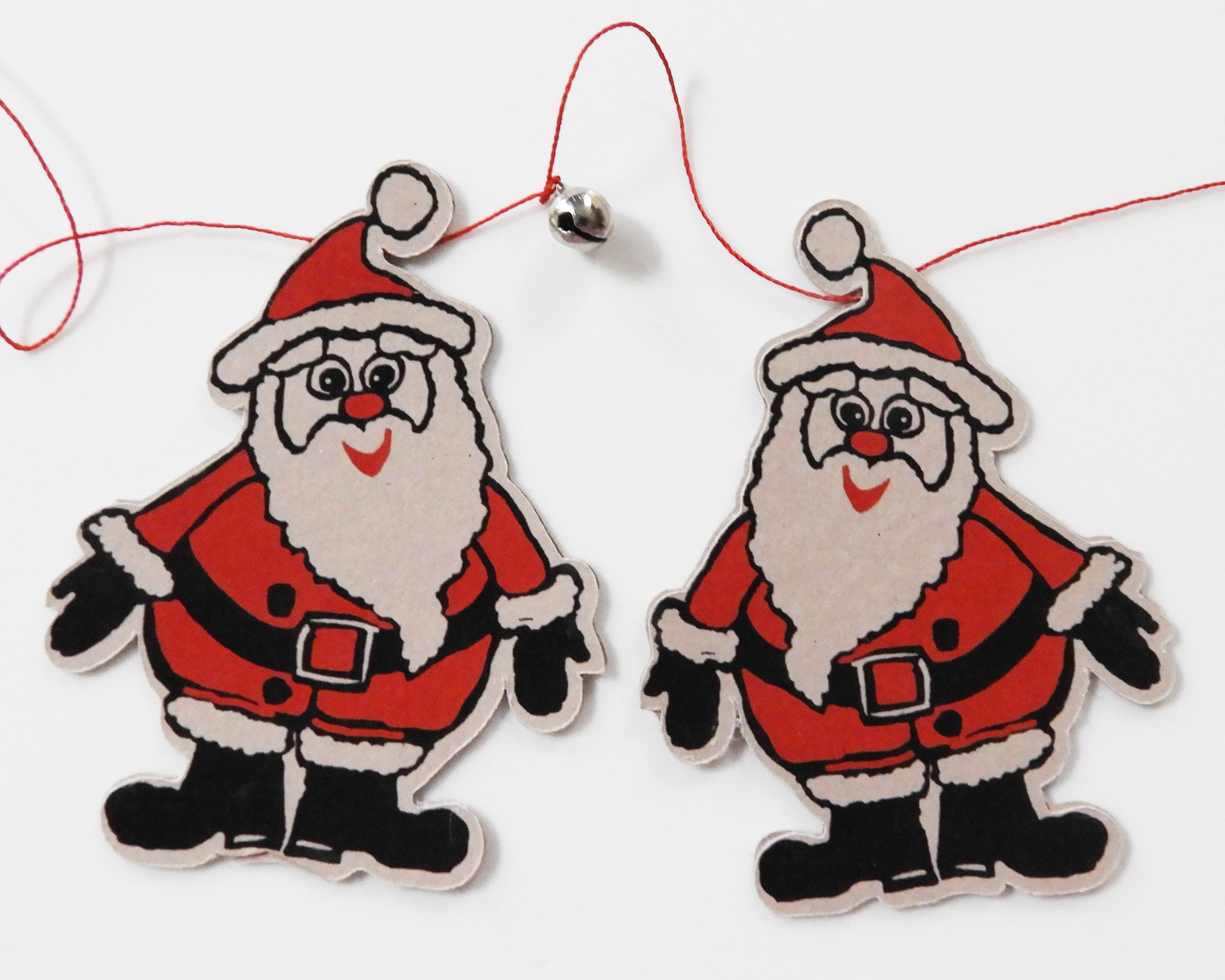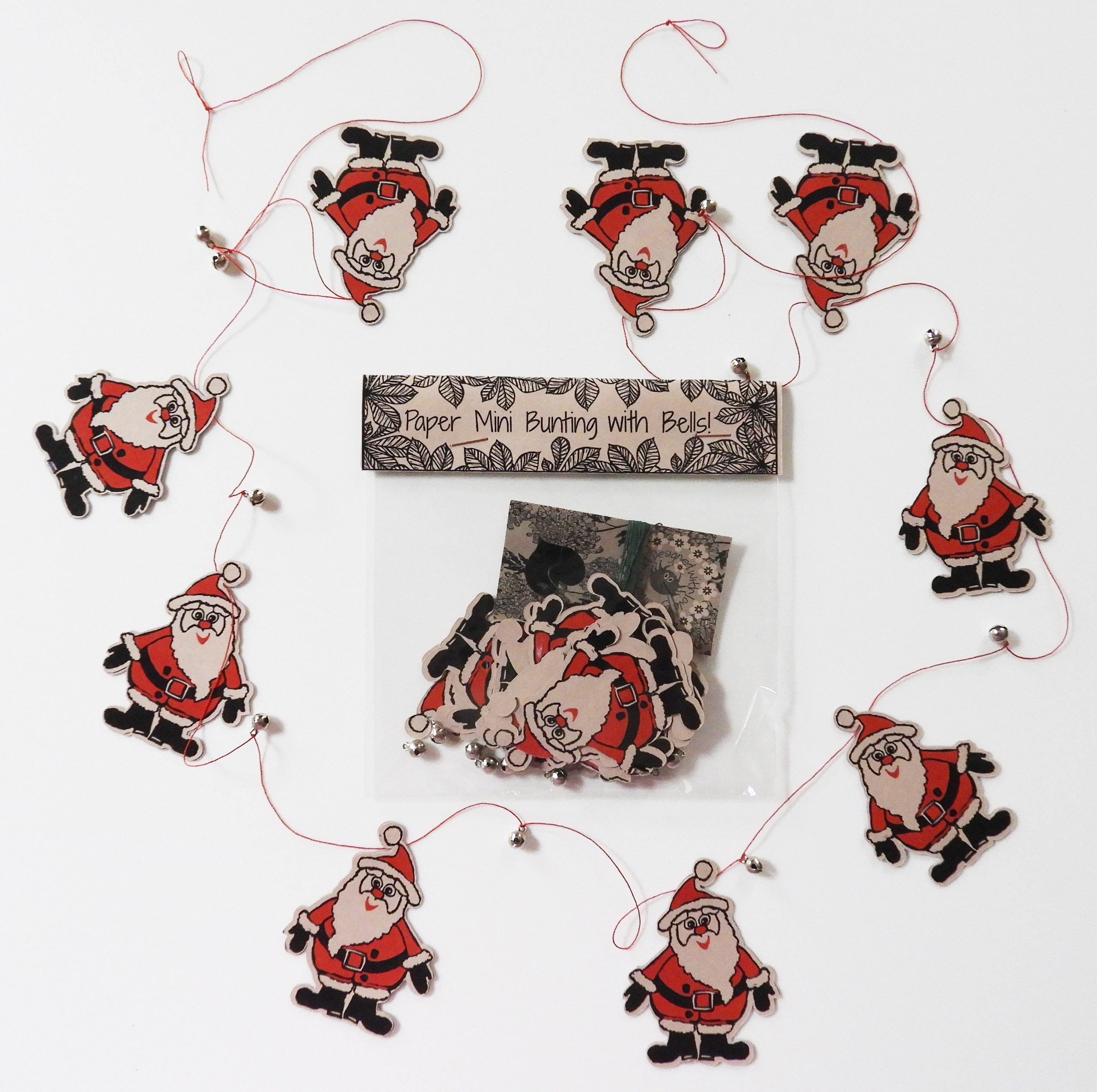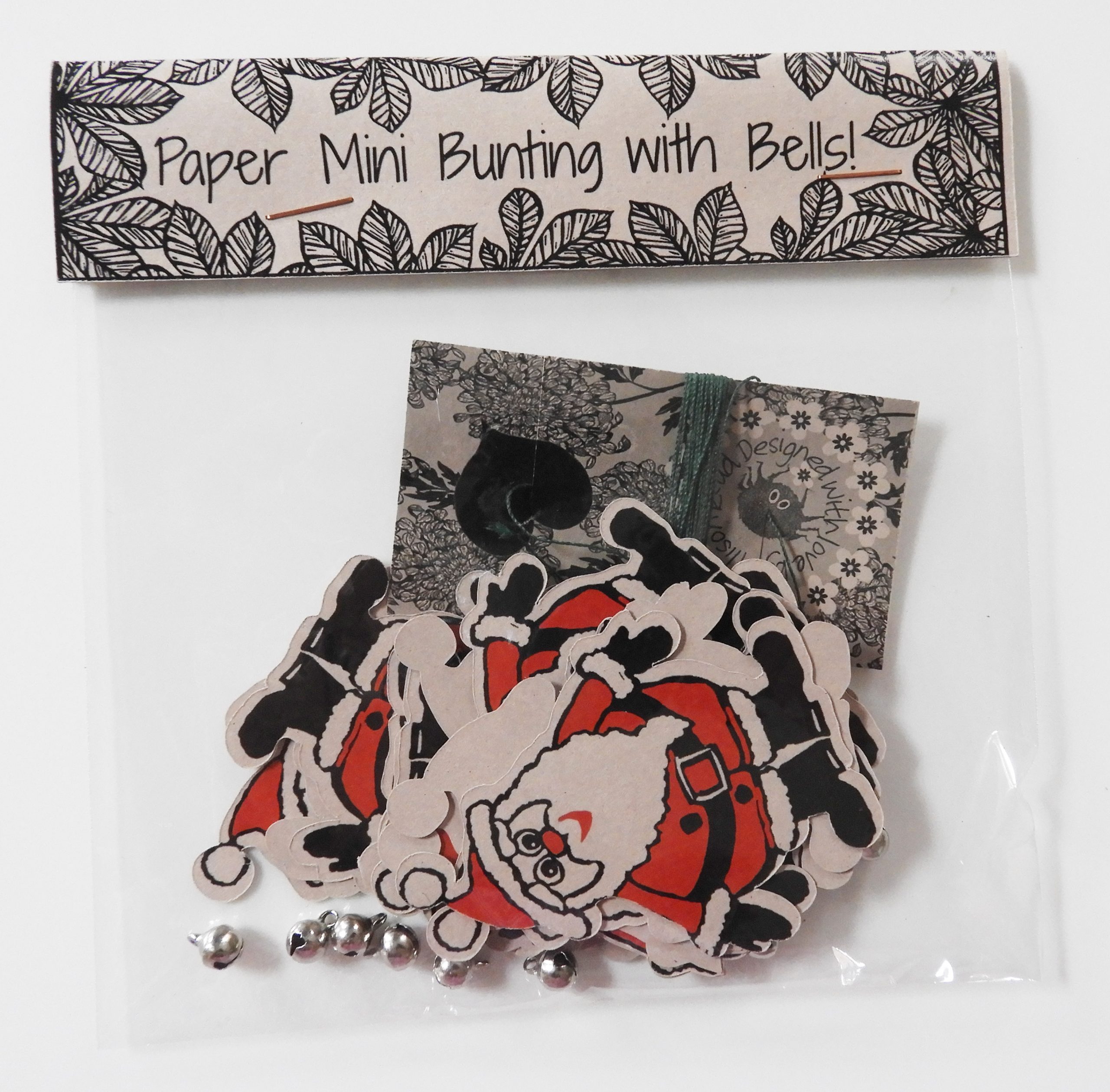 Santa D.I.Y Paper Bunting comes with approximately 18 motif, equal fronts and backs and the cotton. Plus mini bells. Using a glue stick, glue both sides of each motif and stick together along the string ensuring that they are bottom heavy, i.e the cotton is nearer the top. These look great over a fireplace or a bedstead. I used cotton for its delicacy as it tends to disappear into the background and focus is on the motif. Made from 250g 80% recycled heavy paper. Because these are double sided they can hang in a window or in doorways and look the same from any view. Kept separate they can make twice the length of bunting, or be used as die cuts for card making or invites etc. Each kits easily makes 1.2m of bunting, twice if used individually. All the motif are taken from my linocuts and heavily influenced by Victorian decorations.